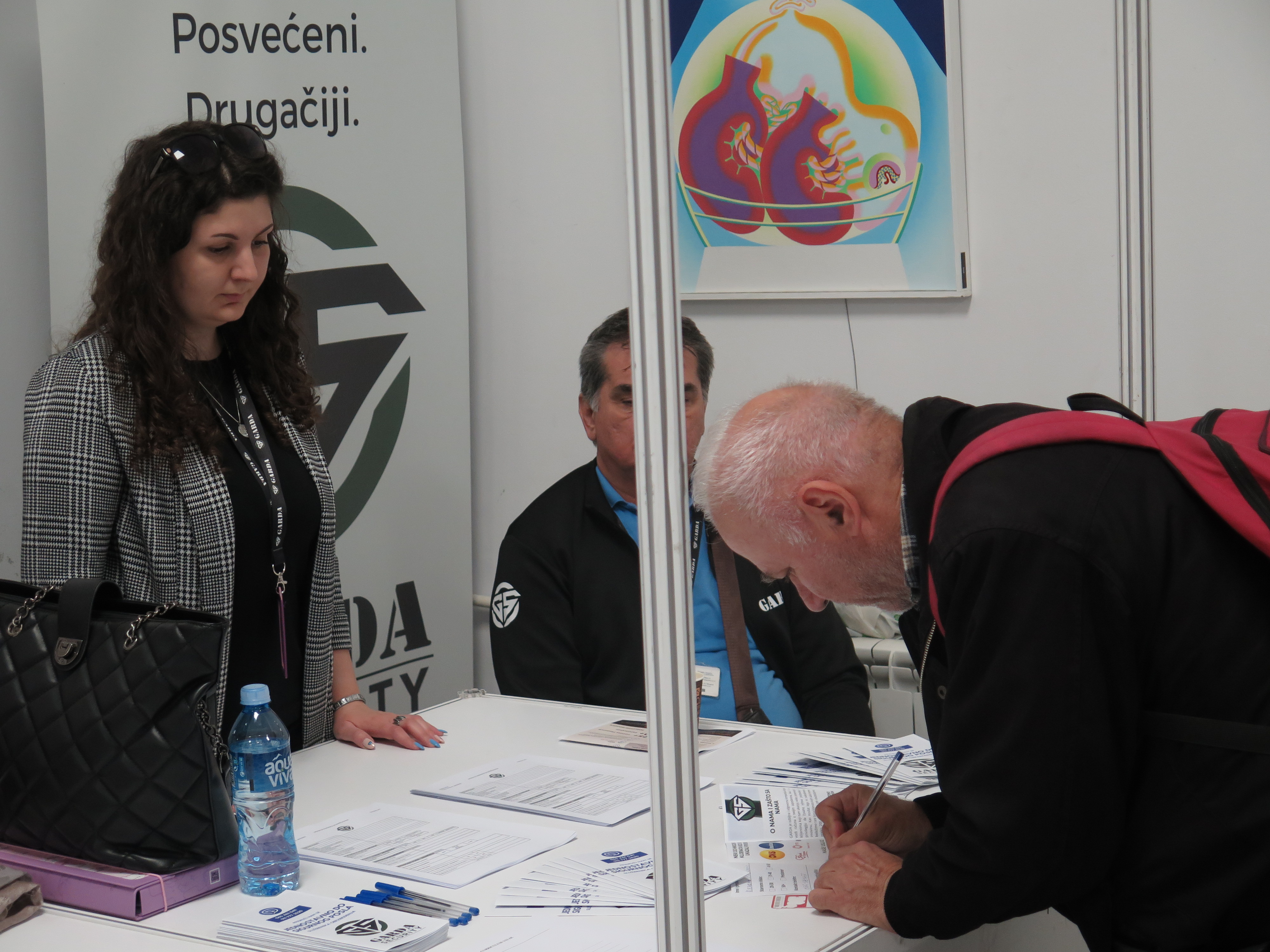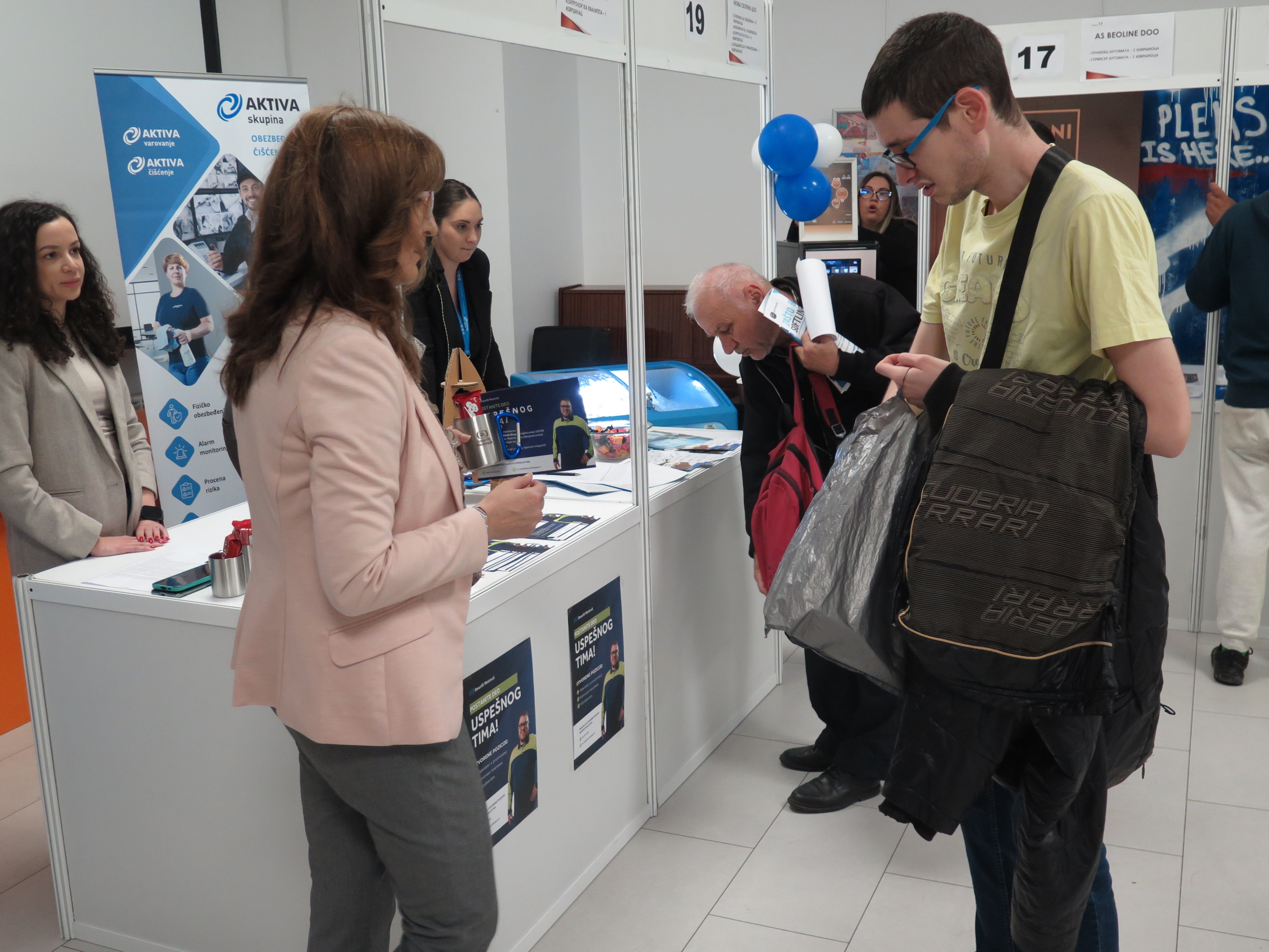 Дамјан Вујић из фирме Актива скупина, која се бави физичко-техничким обезбеђењем, безбедношћу здравља на раду, заштитом од пожара и одржавањем хигијене, наводи да имају потребу за запошљавањем различитих кадрова, пре свега службеника обзбеђења и хигијеничара, али и контролора заштите од пожара и сарадника у финансијама. Наводи да се доста људи распитивало за рад у њиховој фирми, да су већ на пола сајма прикупили довољан број радних биографија, као и да су већ проценили који би им од кандидата одговарали. Како истиче, већ су учествовали на сајмовима, као и на сајмовима за запошљавање особа са инвалидитетом, успевали су на тај начин да обезбеде раднике и наставиће да користе све канале како би дошли до правих људи за своју фирму.