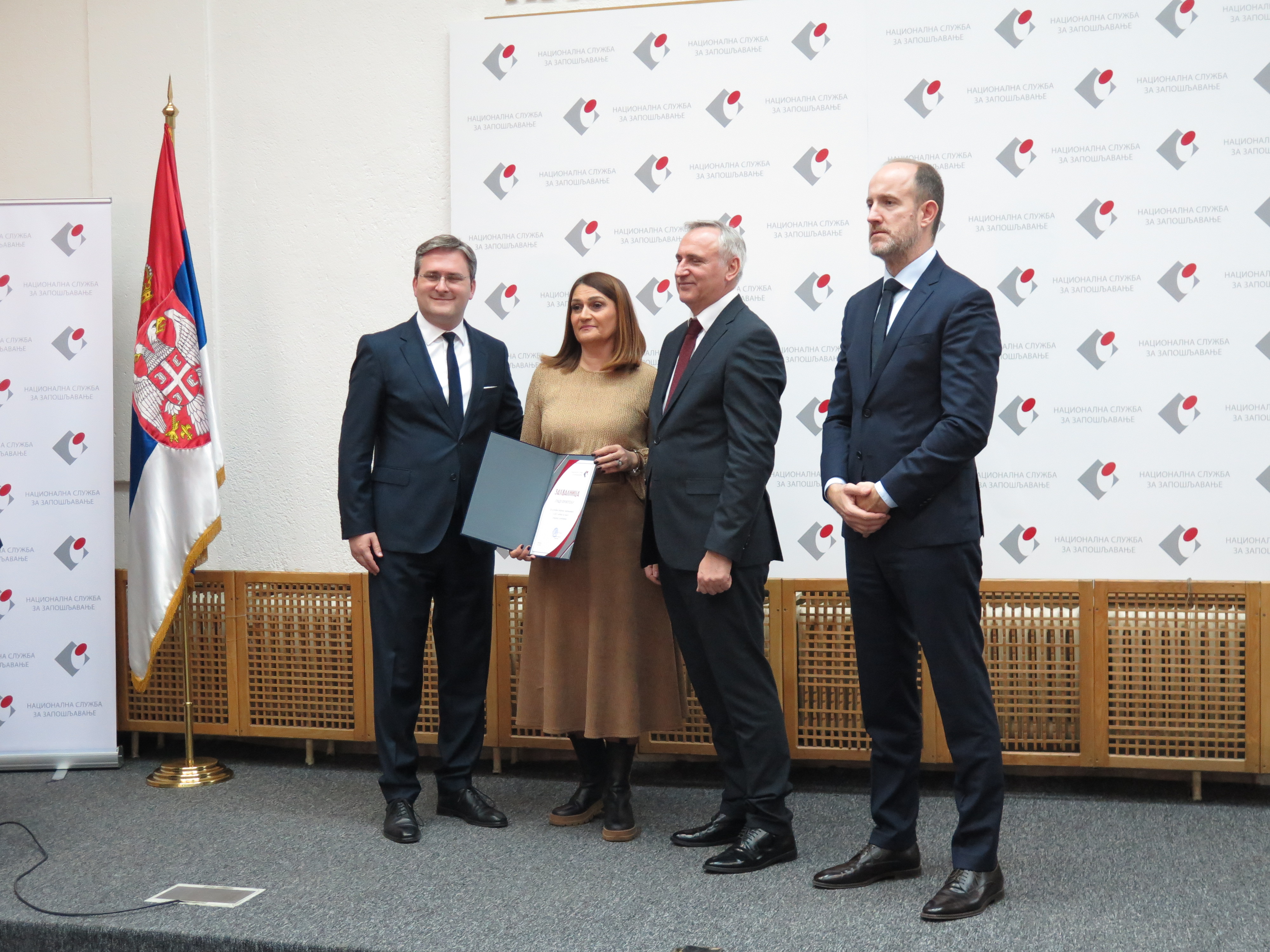 Национална служба за запошљавање је на свечаности одржаној 22. децембра у Привредној комори Србије у Београду обележила 102. годишњицу свог постојања и рада као институције. Том приликом, предтавници Службе доделили су признања и захвалнице заслужним социјалним партнерима који су у 2023. години дали највећи допринос у области политике запошљавања.