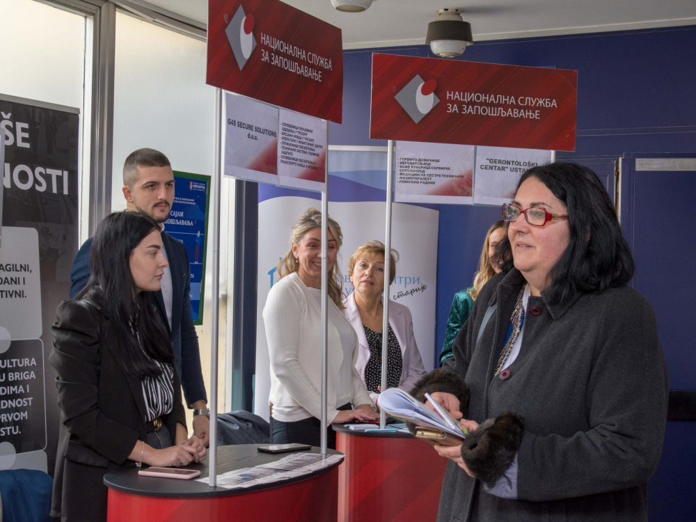 На штанду Националне службе, посетиоци су могли да се информишу о актуелним јавним позивима и конкурсима, програмима и мерама НСЗ за подстицање запошљавања, а незапослени су имали помоћ у писању радне биографије