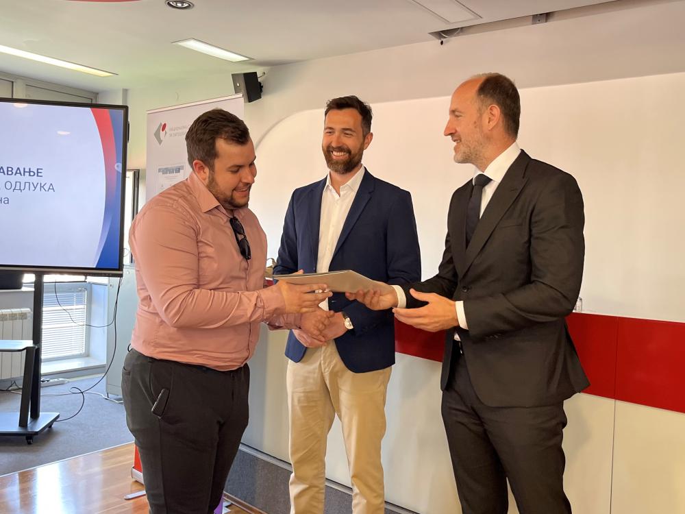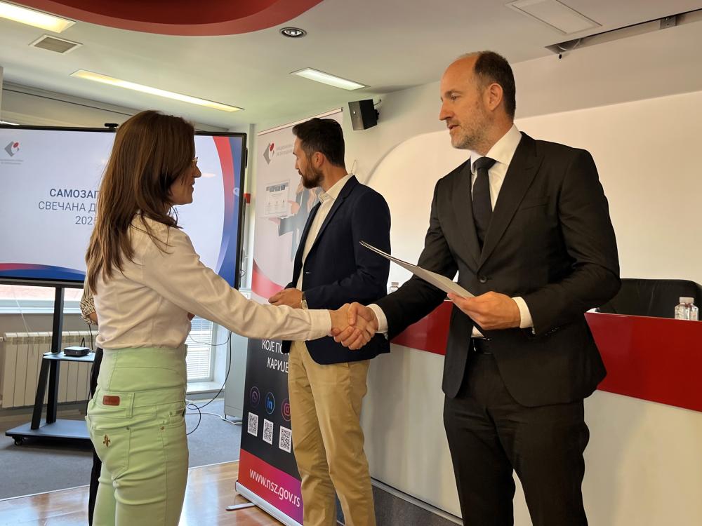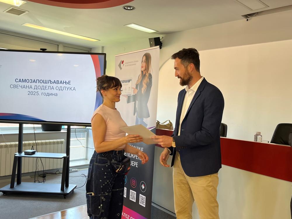 У Филијали за град Београд Националне службе за запошљавање данас је одржана свечана додела Одлука о субвенцијама за самозапошљавање. Одлуке су уручили директор НСЗ Милан Боснић и заменик директора Петар Јарић.