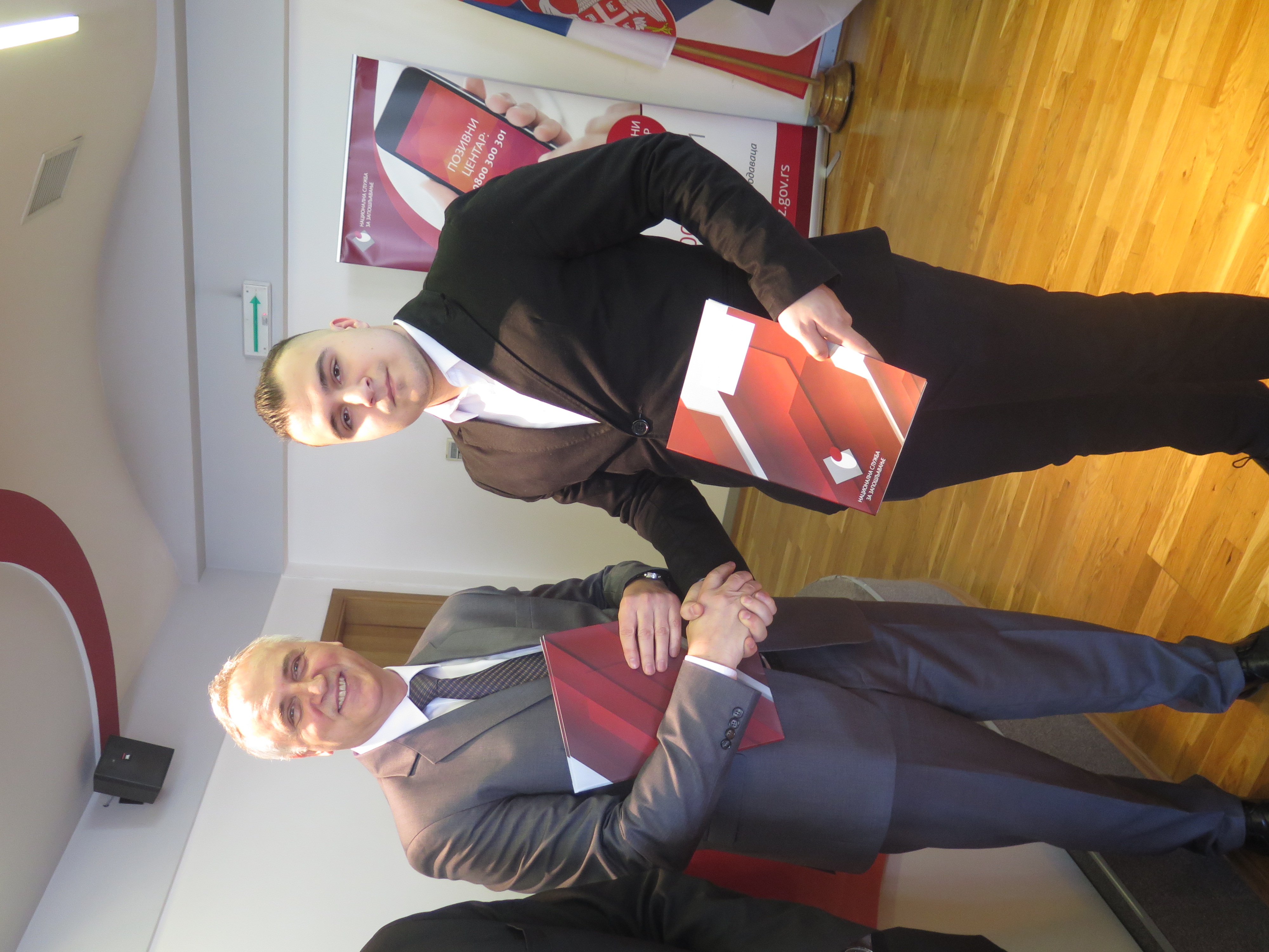 Уговоре су уручили директор Националне службе за запошљавање Зоран Мартиновић и заменик директора Филијале за град Београд, Синиша Кнежевић.