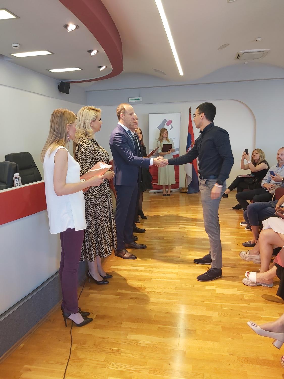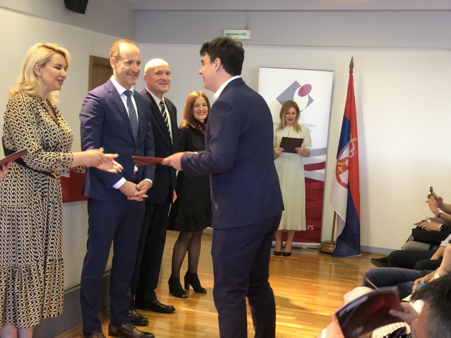 Одлуке су уручили заменик директора Националне службе за запошљавање Петар Јарић, министарка за рад, запошљавање, борачка и социјална питања Дарија Кисић и заменик директора Филијале за град Београд Синиша Кнежевић.