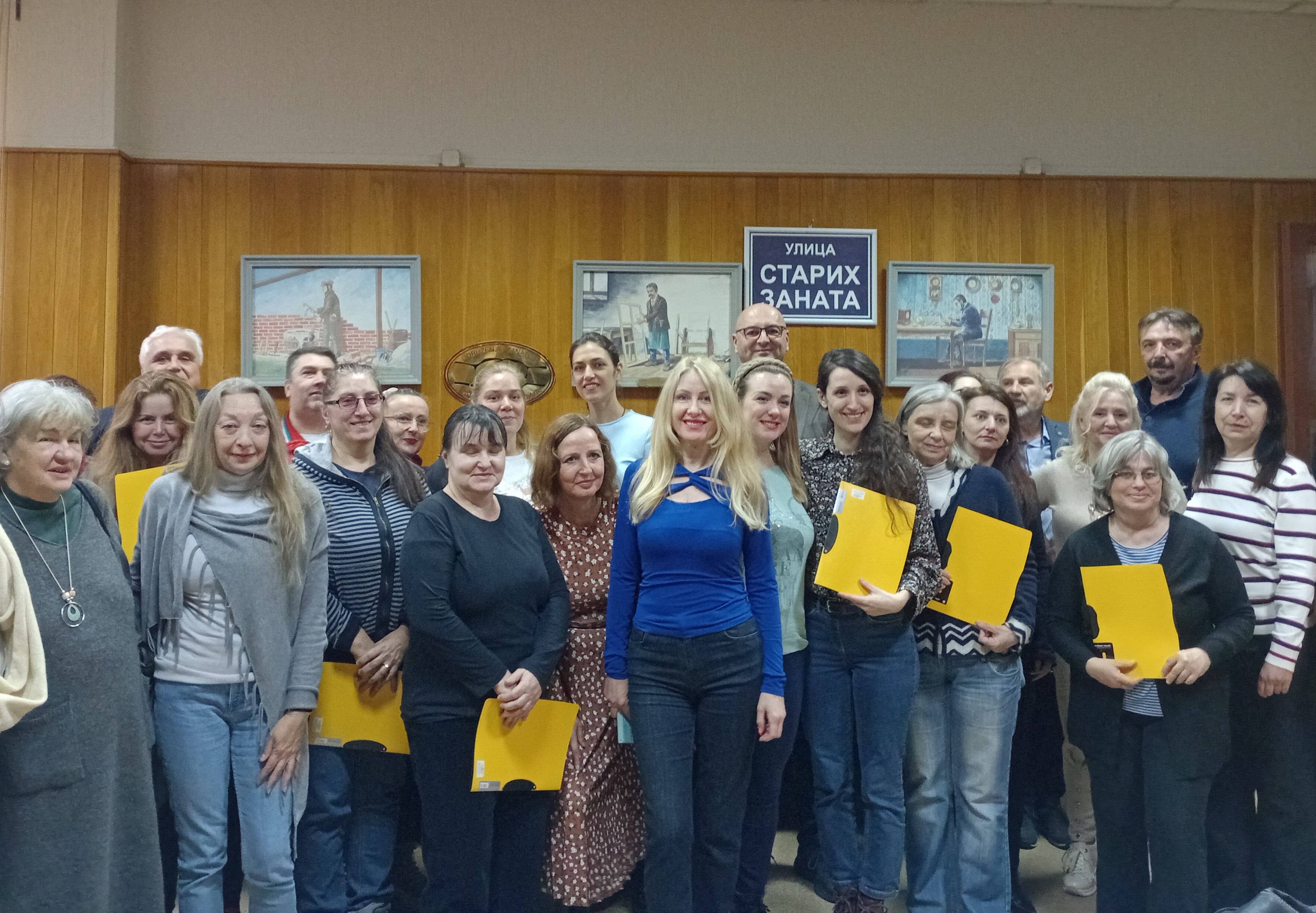 Незапосленим Новосађанима са евиденције Националне службе за запошљавање, 2. априла 2026. године су у свечаној сали Удружења самосталних занатлија Новог Сада, уручени сертификати о успешно завршеној обуци из области старих и уметничких заната. Њих тридесет се у протекла три месеца обучавало и откривало тајне мајстора у уметничком осликавању производа од платна, стакла и керамике, ручној изради предмета од коже, штрикања и хеклања, ручној изради сапуна, изради рамова, урамљивању и рестаурацији. Обуке су организоване у сарадњи Удружења занатлија Новог Сада и Града Новог Сада уз подршку НСЗ-Филијале Нови Сад.