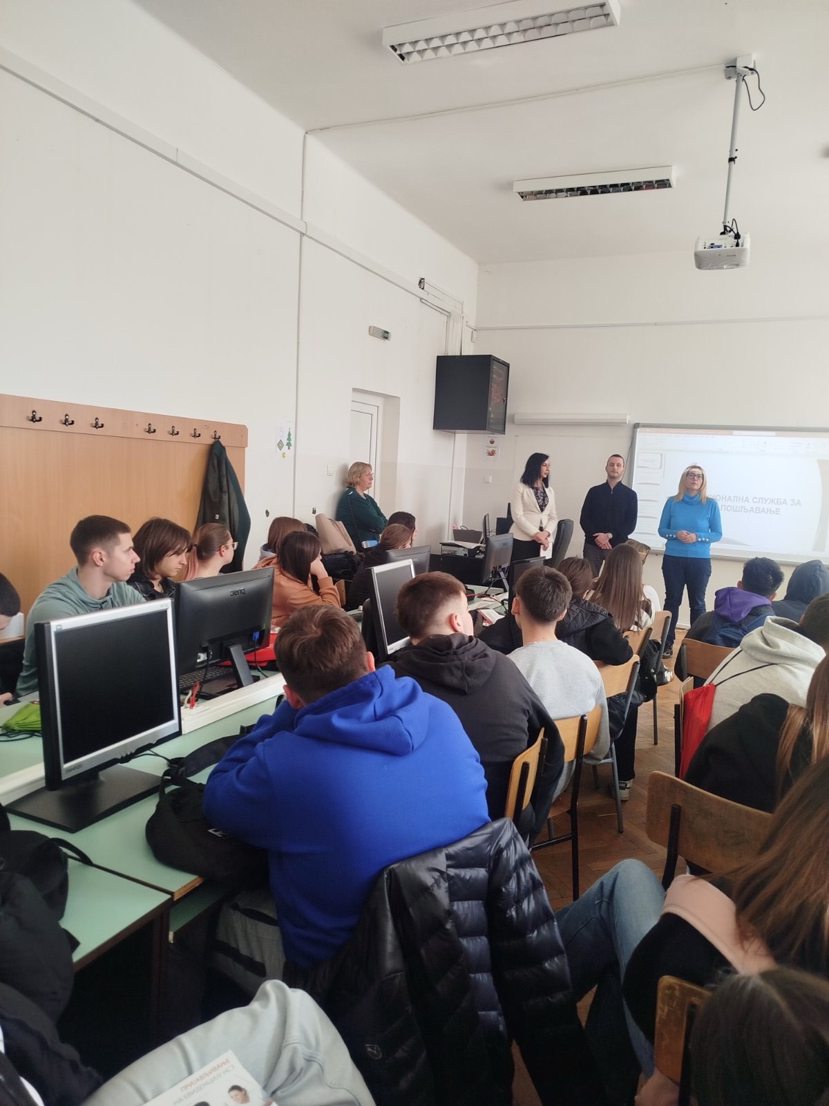 У четвртак, 19. марта 2026. године, у просторијама Текстилно-технолошке и пољопривредне школе „Деспот Ђурађ“ у Смедереву, одржана је презентација мера и услуга Националне службе за запошљавање, намењена ученицима завршних разреда. Презентацију су реализовале Невена Банчов, начелница Одељења за посредовање у запошљавању и планирање каријере и Бојана Ивовић, саветница за запошљавање у Филијали Смедерево.