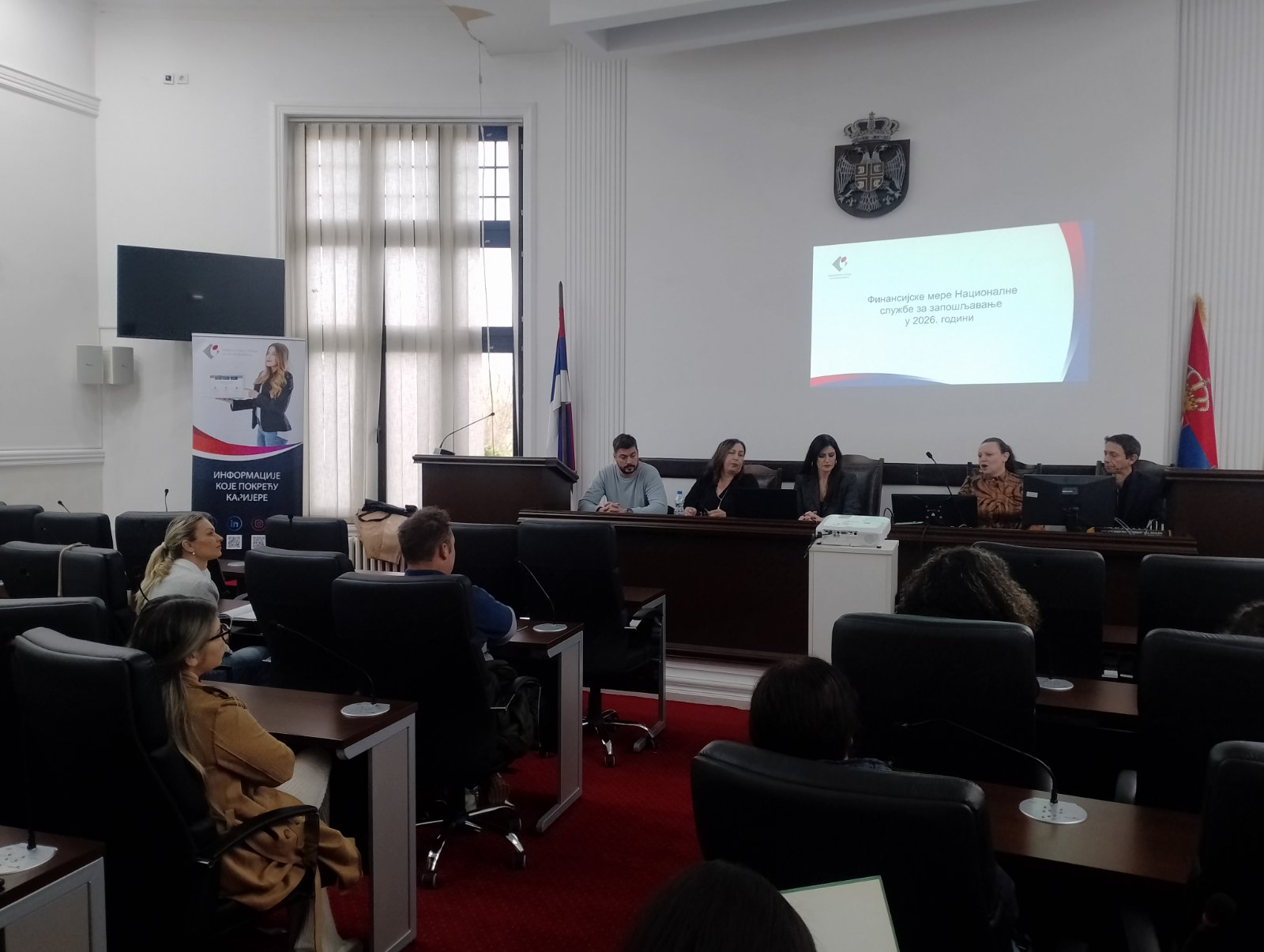 У просторијама Градске општине Нови Београд, 2. априла 2026. године, одржана је презентација финансијских мера Националне службе за запошљавање за 2026. годину, у организацији Службе Нови Београд НСЗ Филијале за град Београд.
