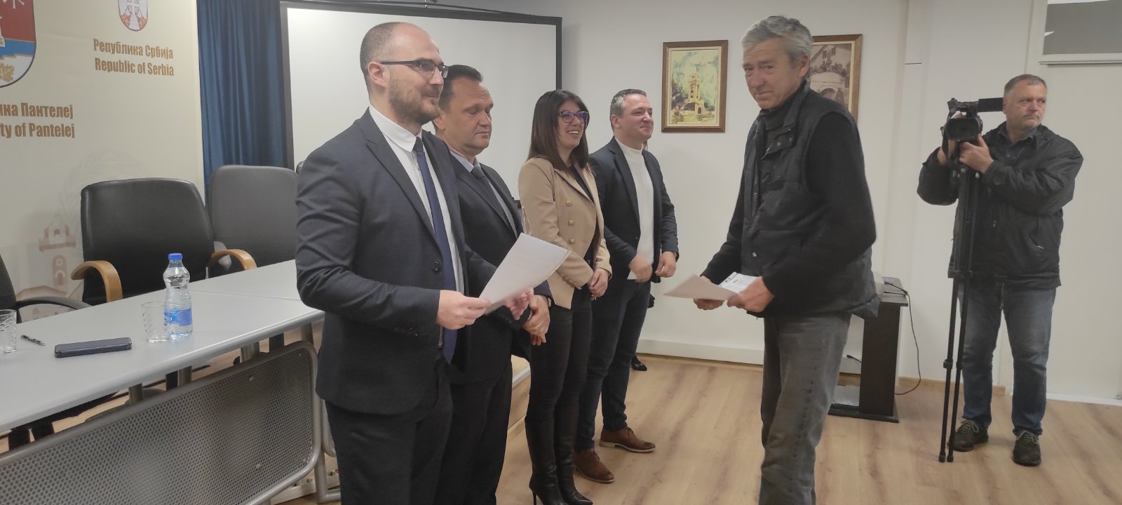 У просторијама Градске општине Пантелеј 1. априла су свечано уручени уговори незапосленим лицима која ће бити ангажована на јавним радовима преко републичког јавног позива за особе са инвалидитетом и Споразума о техничкој подршци Националне службе за запошљавање тој нишкој општини.