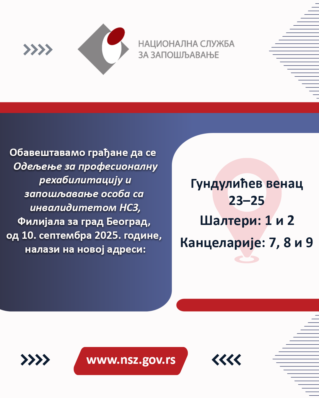 Национална служба за запошљавање (НСЗ) – Филијала Крушевац позива послодавце и незапослена лица на јесењи сајам запошљавања у организацији Филијале НСЗ Крушевац. Сајам ће се одржати 20. новембра 2025. године, од 12 до 14 часова, у Ликовном салону у Трстенику, ул. Кнегиње Милице бб.