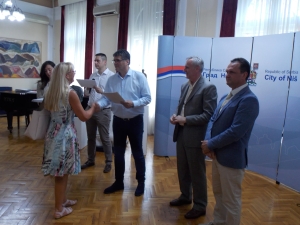 У сали Скупштине града Ниша додељени су уговори корисницима програма самозапошљавања, којима су субвенције одобрене по основу споразума о суфинансирању потписаног између Националне службе за запошљавање - Филијале Ниш и Града Ниша, 8. маја 2019. године.
