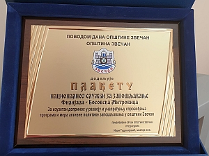 Поводом Дана Општине Звечан, на свечаној академији одржаној 12. јула 2019. године у Звечану, Филијали Косовска Митровица НСЗ додељена је плакета за изузетан допринос у развоју и унапређењу спровођења програма и мера активне политике запошљавања на подручју те општине. Иван Тодосијевић, председник Привременог органа Општине Звечан плакету је уручио Верици Ћеранић, директорки Филијале Косовска Митровица Националне службе за зашпошљавање.