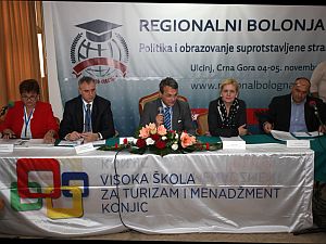 Регионални Болоња форум, под називом „Политика и образовање - супротстављене стране на Балкану“, одржан у Улцињу, 4. и 5. новембра 2016. године, у организацији Високе школе за туризам и менаџмент из Коњица и партнера, окупио је представнике служби за запошљавање из региона, факултета и универзитета, министарстава образовања и привреде, Савета за регионалну сарадњу и многе друге.