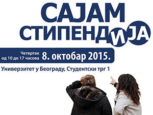 Центар за развој каријере и саветовање студената Универзитета у Београду организује Сајам стипендија, који ће се одржати у четвртак, 8. октобра 2015. године, од 10 до 17 часова, у згради Ректората Универзитета у Београду (Капетан Мишино здање, Студентски трг 1).