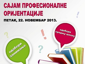 Nacionalna služba za zapošljavanje - Filijala Pančevo, prvi put organizuje Sajam profesionalne orijentacije, 14. i 15. novembra 2013. godine, od 10:00 do 17:00 časova, u holu Mašinske škole ''Pančevo'', Braće Jovanovića 103.